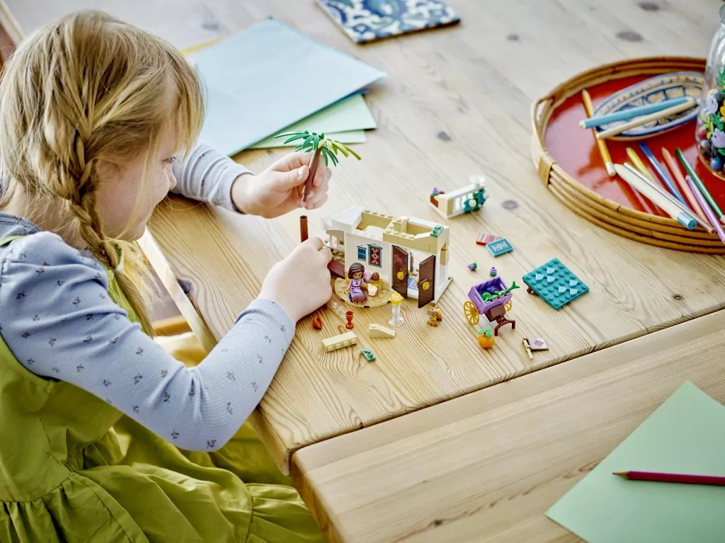 Zestaw Asha w Rosas przenosi dzieci od 6. roku życia do zaczarowanego świata nowego filmu Disneya „Życzenie”. Dzięki szczegółowemu modelowi targowiska ze schodami, balkonem, stołem i wózkiem, mali budowniczowie mogą tworzyć własne opowieści i odgrywać ulubione sceny z magicznego królestwa Rosas.