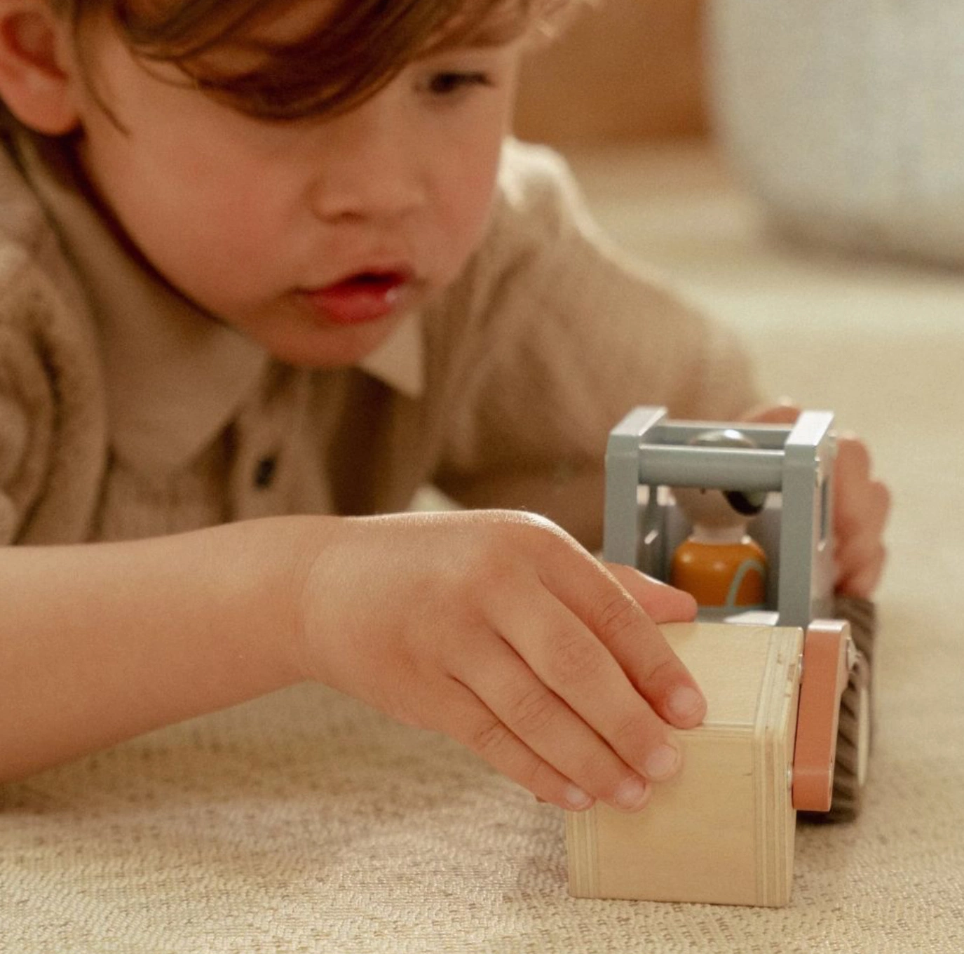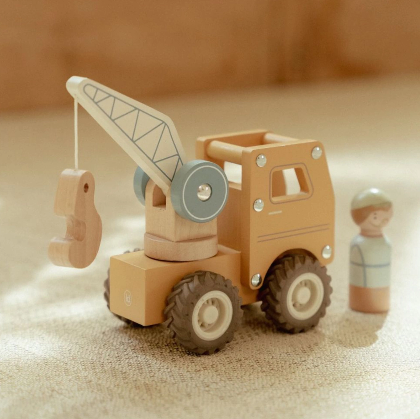 - Drewniana ciężarówka z dźwigiem Little Dutch to zabawka, która pozwala dzieciom przenosić, podnosić i przewozić ładunki niczym prawdziwi budowlańcy.