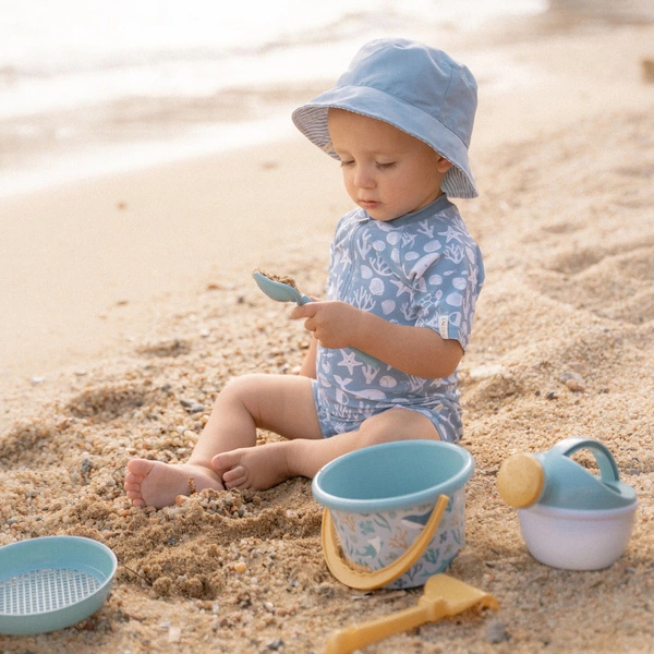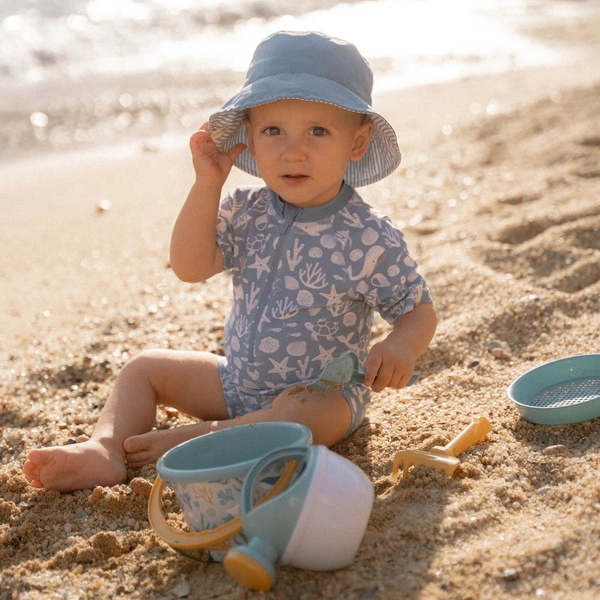 - Pozwól dziecku cieszyć się słońcem bez trosk! Dwustronny kapelusz Stripes Ocean Blue od Little Dutch to praktyczne i stylowe rozwiązanie na ciepłe dni.