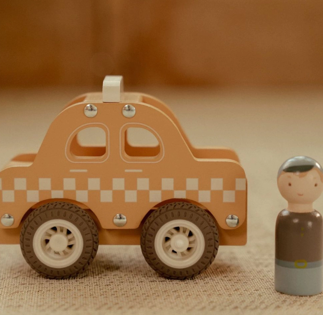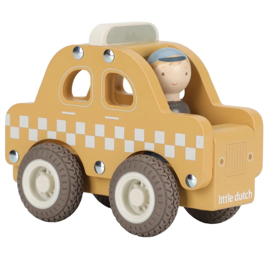 - Gotowi na przejażdżkę po mieście? Drewniana taksówka Little Dutch to klasyczna zabawka, która przeniesie malucha w świat codziennych przygód.