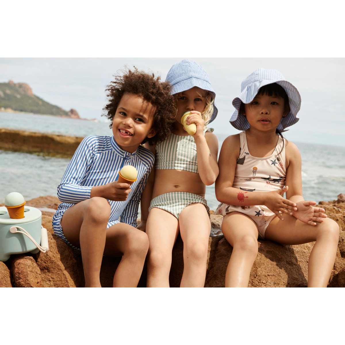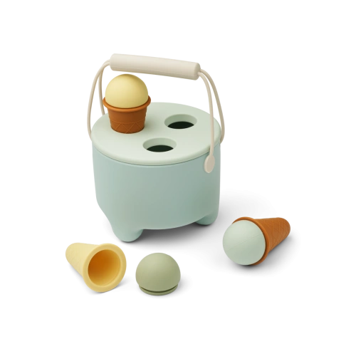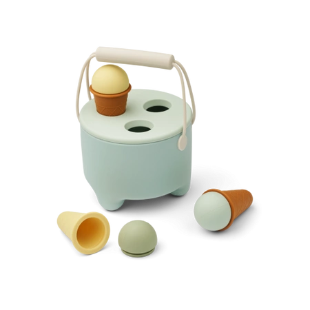 - Zestaw do zabawy z lodami Fleur od Liewood to przenośna zabawka wykonana w 100% z miękkiego silikonu. Zawiera wiadro, stojak i trzy rozkładane lody, idealne do kreatywnej zabawy na świeżym powietrzu.