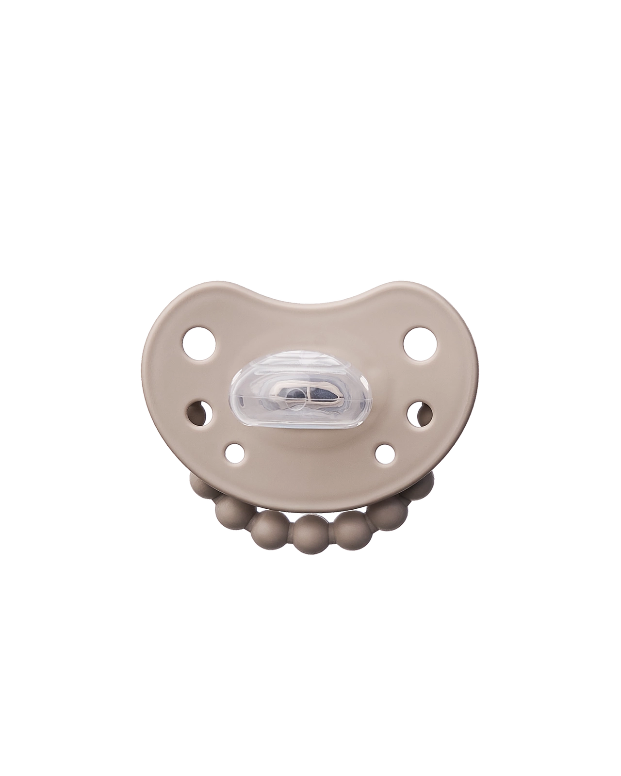 Uwaga: Gumka w rozmiarze 0-3 miesięcy jest jedną z najmniejszych dostępnych na rynku. Jeśli Twoje dziecko ma bardzo silny odruch ssania, zalecamy wybór rozmiaru 3-6 miesięcy, ponieważ mniejsza tarczka może zbyt mocno przylegać do brody dziecka.