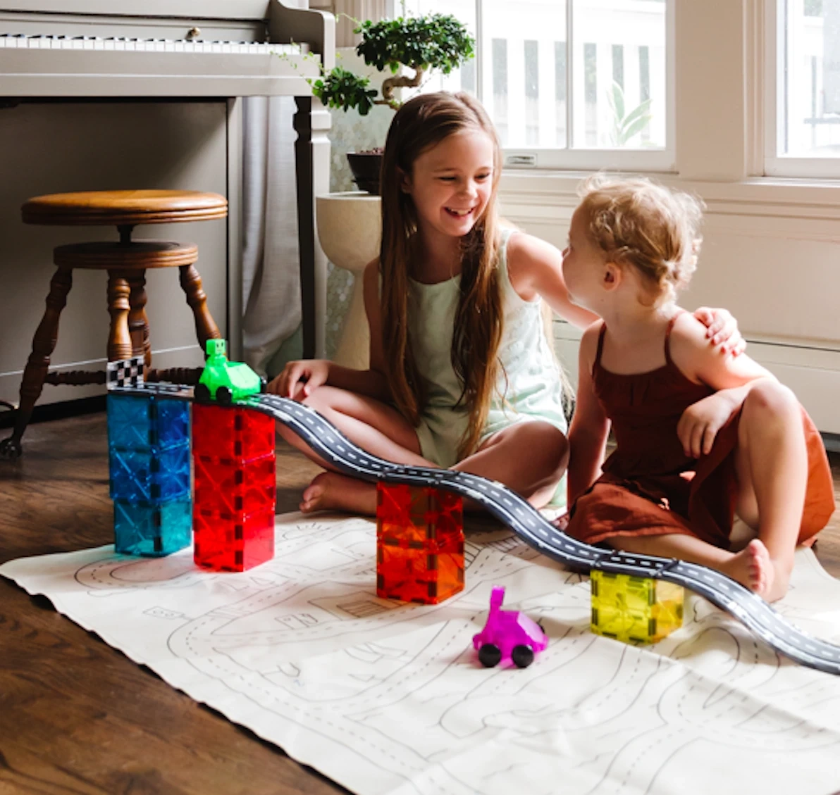 Nowość dla małych fanów motoryzacji! Magna-Tiles Downhill Duo to innowacyjny zestaw, który wprowadza pierwszą w pełni magnetyczną wyścigową drogę, idealnie dopasowaną do małych rączek i rozwiniętej wyobraźni dzieci.