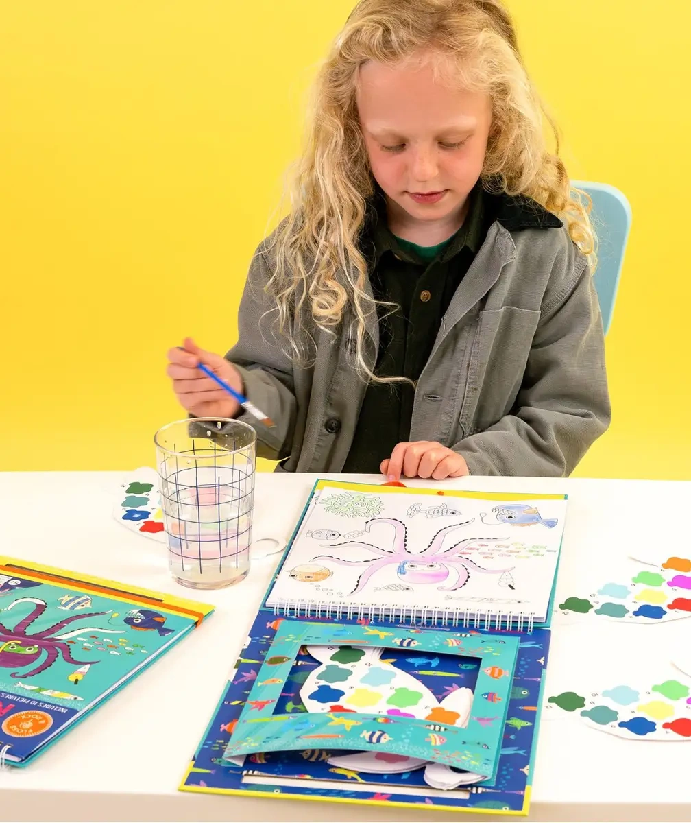 Przenieś swoje dziecko w fascynujący świat oceanicznych stworzeń – meduz, rybek, żółwi i raf koralowych! Ten zestaw pozwala malować po numerkach, dzięki czemu każde dziecko może krok po kroku stworzyć kolorowy obrazek, korzystając z gotowych palet farb. Prosta instrukcja i przygotowane kolory ułatwiają rozpoczęcie pracy, minimalizują bałagan i pozwalają skupić się na kreatywnej zabawie.