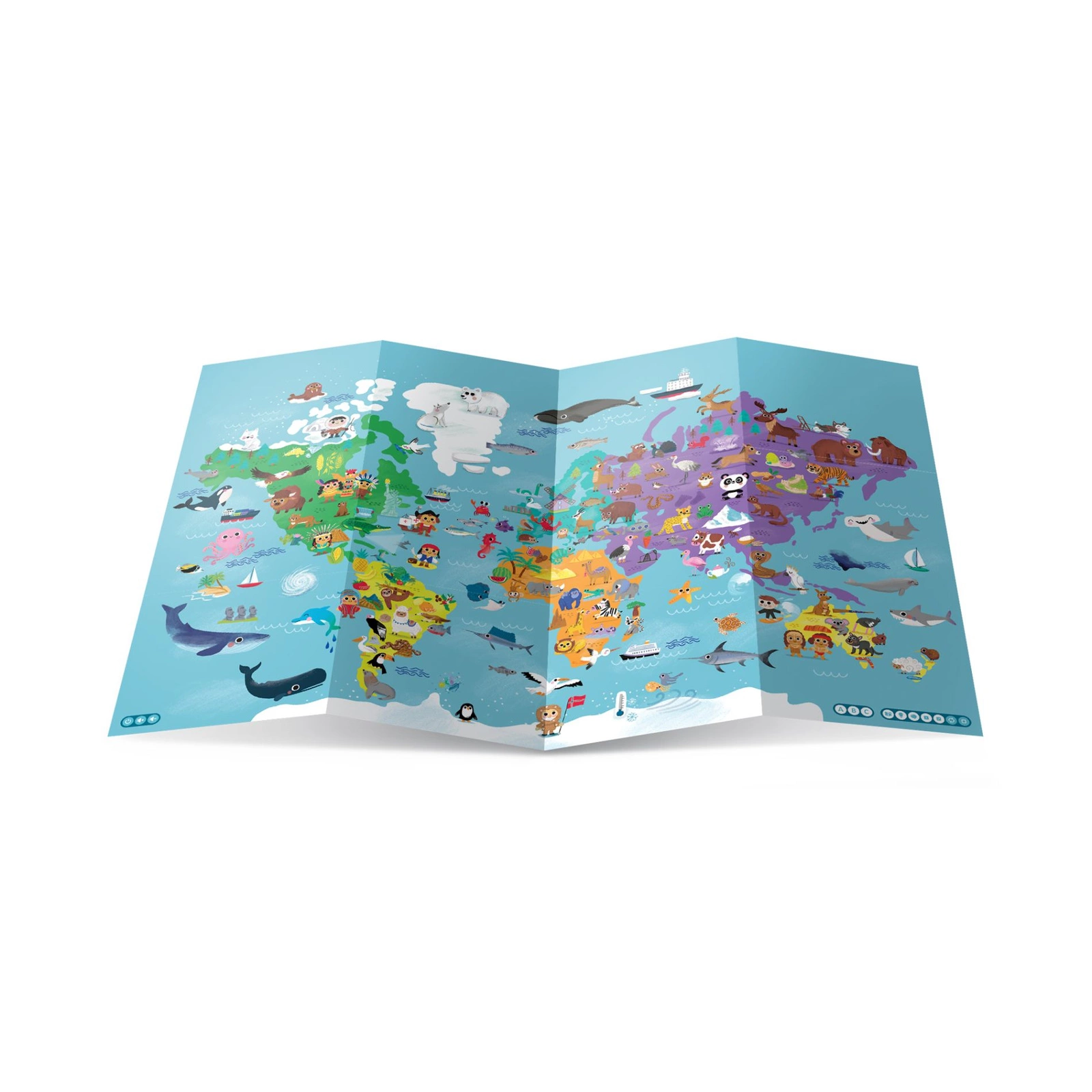 - Pozwól dziecku odkrywać świat z uśmiechem – bez wychodzenia z domu! Ta wyjątkowa mapa świata została zaprojektowana z myślą o najmłodszych odkrywcach, którzy z pasją poznają nowe kraje, kultury, ciekawostki geograficzne i tajemnice przyrody.