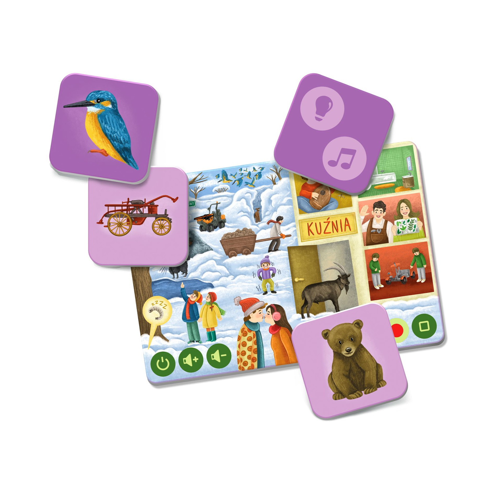 Na 48 żetonach zakodowano dźwięki i słowa, które dziecko poznaje poprzez zabawę z interaktywnym piórem Albik. Po jednej stronie znajduje się dźwięk lub słowo, po drugiej – barwny obrazek, którego nazwę i opis można odsłuchać. Gracze mogą wybierać spośród dwóch poziomów trudności: łatwiejszego (odsłuchiwanie wyrazów) lub trudniejszego (rozpoznawanie dźwięków).