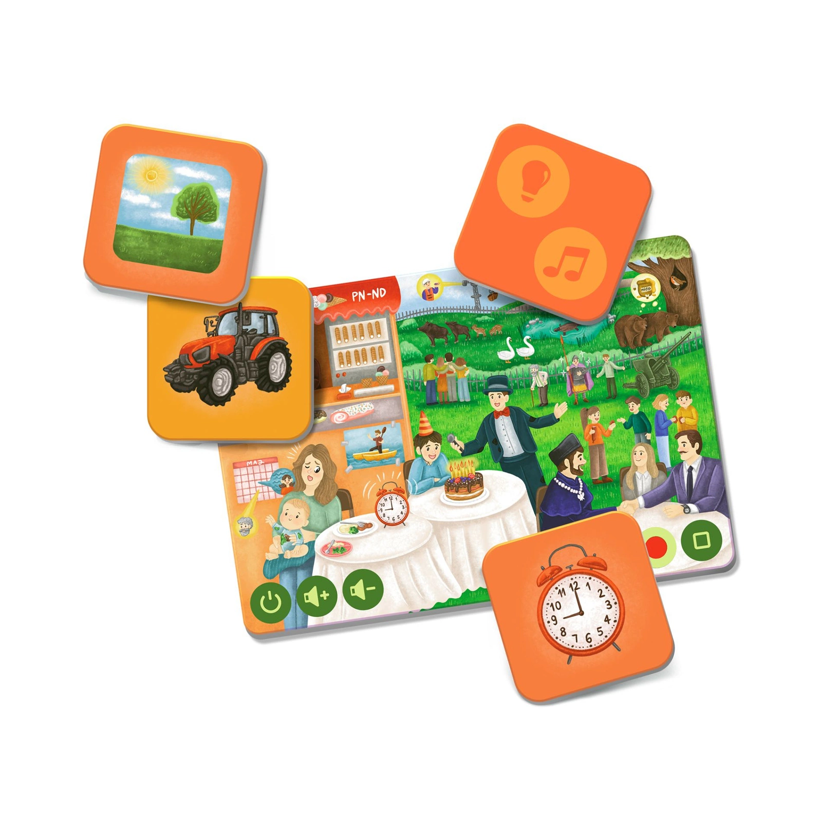 Zestaw zawiera również 2 karty aktywności, które umożliwiają dodatkowe ćwiczenia. Funkcja nagrywania pozwala dziecku porównać własną wymowę z głosem lektorki i w prosty sposób doskonalić poprawną artykulację.