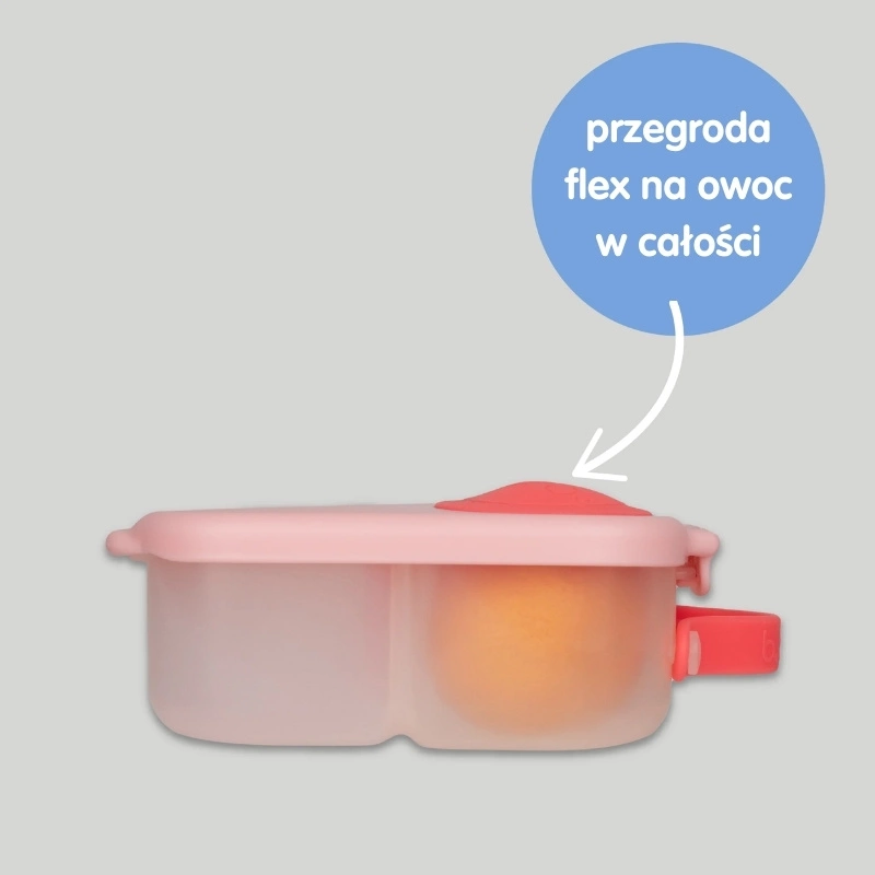 - Dwie szczelne przegrody, w tym jedna typu „flex” – umożliwia zamknięcie w niej całego owocu, na przykład jabłka lub nektarynki.