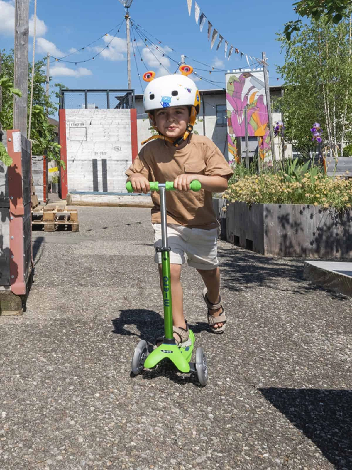 - Mini Micro Deluxe LED – trójkołowa hulajnoga dla dzieci z regulowaną kierownicą i świecącymi kołami LED. Stabilna, bezpieczna i pełna zabawy!