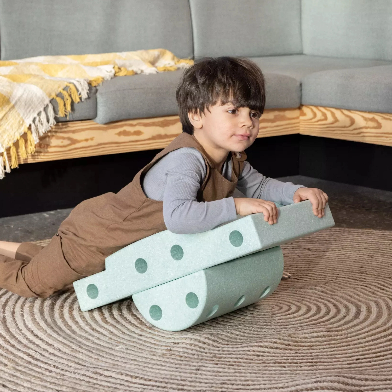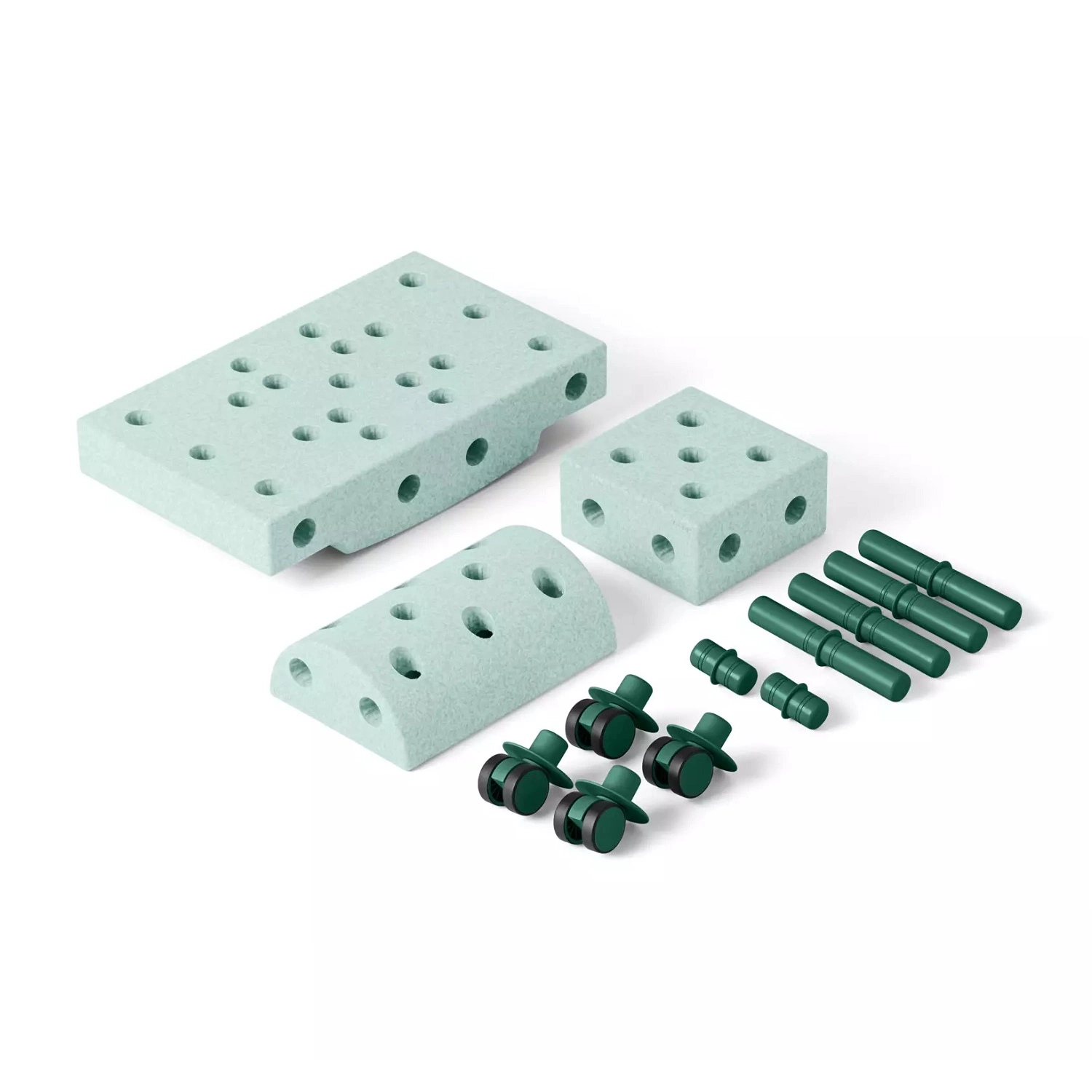 Curiosity Set to idealny punkt wyjścia do świata MODU – zestaw, który inspiruje do ruchu, eksperymentowania i budowania. Z tych lekkich, trwałych elementów można stworzyć ponad 10 różnorodnych konstrukcji, m.in. bujak, jeździk do przemieszczania się na brzuszku czy pierwszy pojazd dla bardziej samodzielnych dzieci.