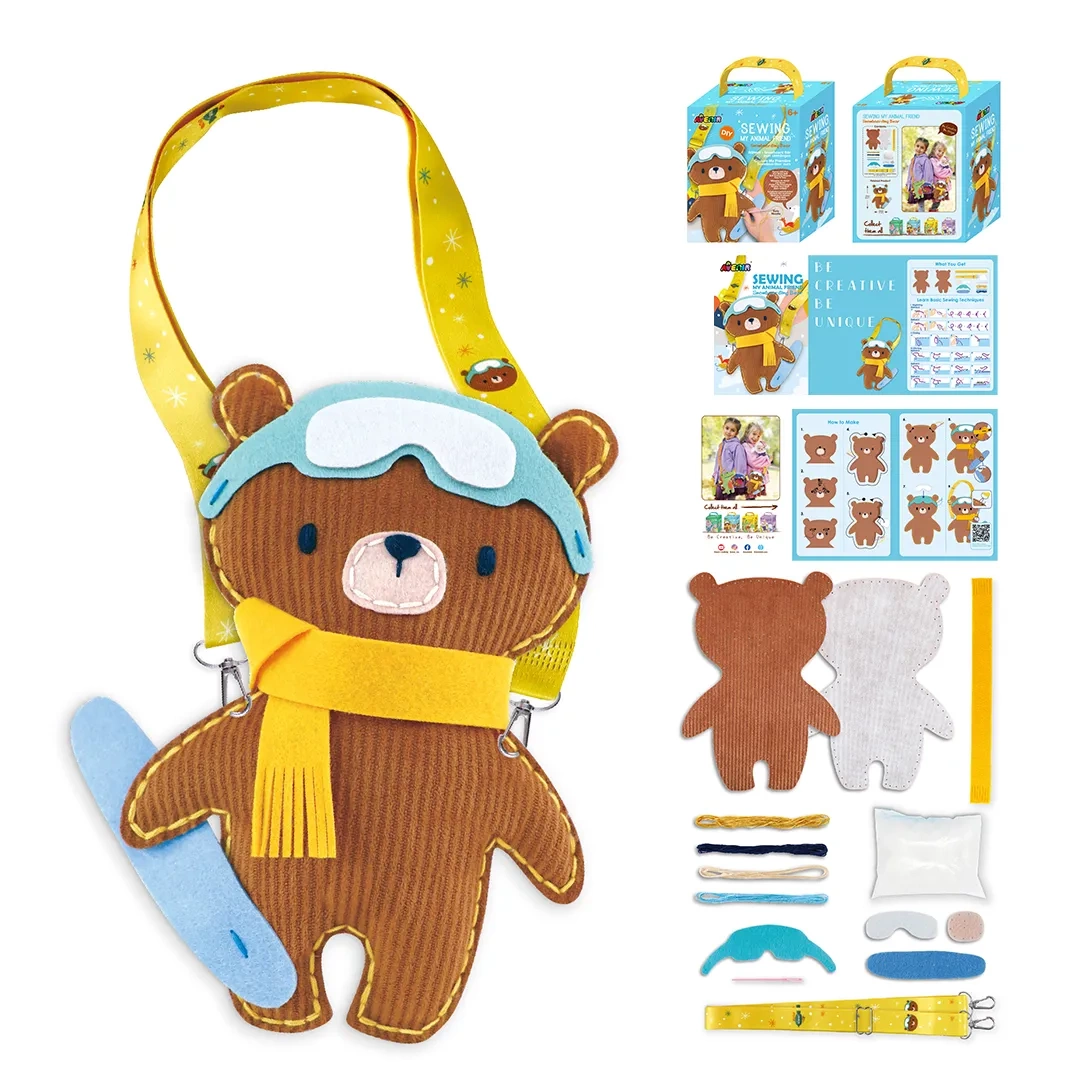 Stwórz swojego unikalnego misia snowboardzistę z tym fantastycznym zestawem do szycia! Dzięki prostym instrukcjom krok po kroku możesz wykonać własnoręcznie uroczego misia z deską snowboardową (wymiary 17,5 x 29 cm).