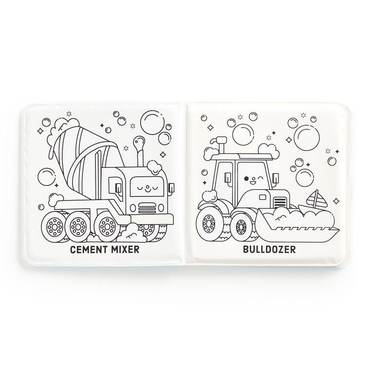 Niezwykła książeczka do kąpieli Kopalnia bąbelków amerykańskiej marki Mudpuppy wykonana jest z miękkiego, łatwego do czyszczenia i szybkoschnącego materiału. Na 6 stronach znajdują się pojazdy budowlane, takie jak koparka, betoniarka czy buldożer, które przewożą lub miksują... pianę i bąbelki! Książeczka ma „magiczne” właściwości – po zanurzeniu w wodzie na czarno-białych ilustracjach pojawiają się kolory.