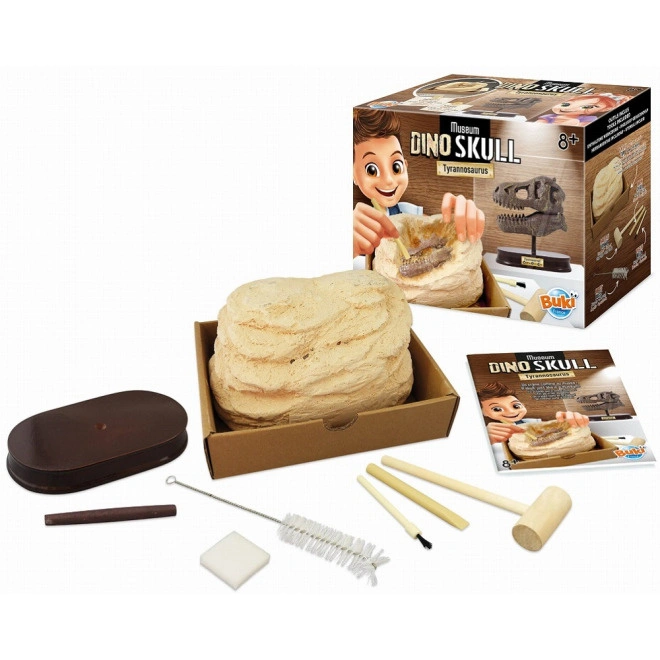 - Zestaw dla przyszłych paleontologów umożliwia wykopanie czaszki dinozaura za pomocą dłuta i młotka. Po oczyszczeniu szczoteczką i pędzelkiem, można umieścić ją na podstawce, tworząc własną muzealną wystawę!
