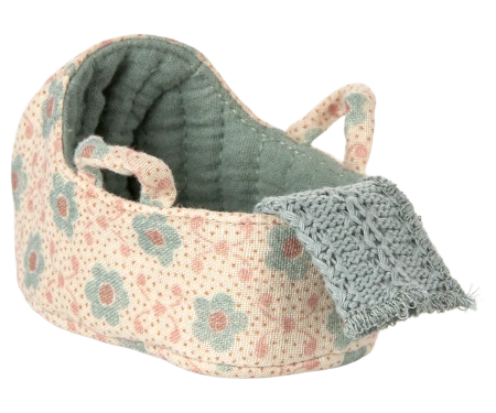 Nosidełko posiada delikatne wypełnienie i malutki kocyk, dzięki czemu Twoja myszka może wygodnie spać zarówno w domku, jak i podczas „spacerów” czy zabawy w podróż. Subtelny, pastelowy odcień niebieskiego idealnie komponuje się z innymi akcesoriami Maileg, tworząc magiczny, spójny świat miniaturowych przygód.
