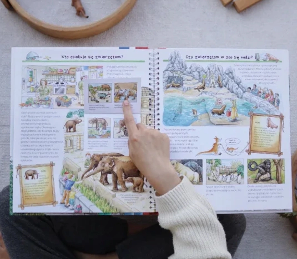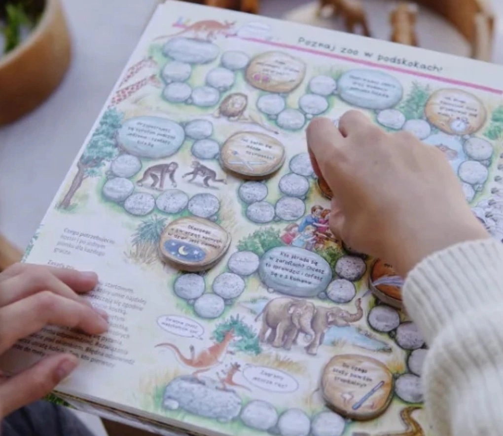 Dziecko dowie się także, co robi się, gdy zwierzę zachoruje, czy może się nudzić i jak wygląda jego otoczenie. Książka nie tylko uczy, ale też rozwija empatię i zrozumienie dla potrzeb dzikich zwierząt.