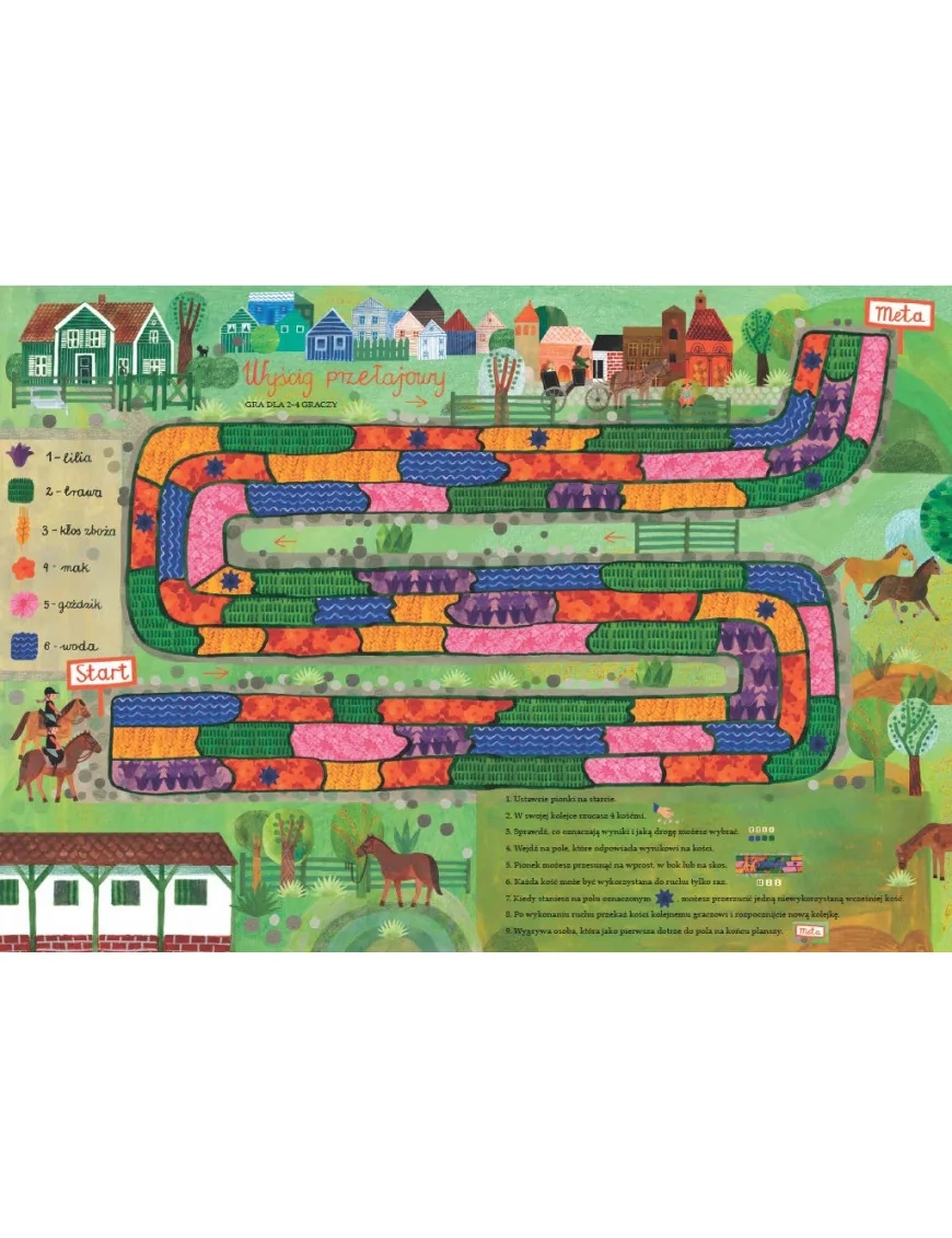 Spotkacie tu konie, kucyki, koniki polskie, rzadkie zebryny oraz zebrule, a także te zupełnie wymyślone: jednorożce czy centaury. Dowiecie się, czym się różni cwał od kłusu i galopu oraz co zapleść z końskiej grzywy. Poznacie mnóstwo końskich maści: w tym szampańską, myszatą i tarantowatą. Zajrzycie też do stajni, by odkryć, w co się ubiera jeździec, jak jest skonstruowane siodło oraz co konie jedzą i jak spędzają wolny czas.