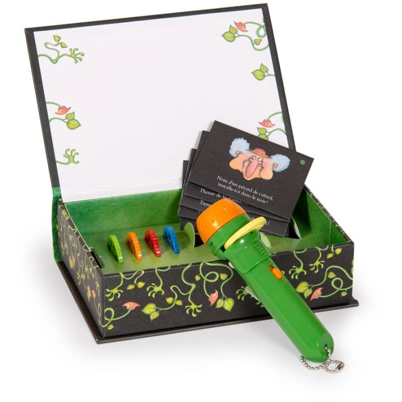 Ostrość projektora reguluje się, kręcąc przednią częścią latarki w innym kolorze niż reszta urządzenia. Na wieczorny seans można zaprosić całą rodzinę, wykorzystując jedno z pięciu zaproszeń dołączonych do zestawu.