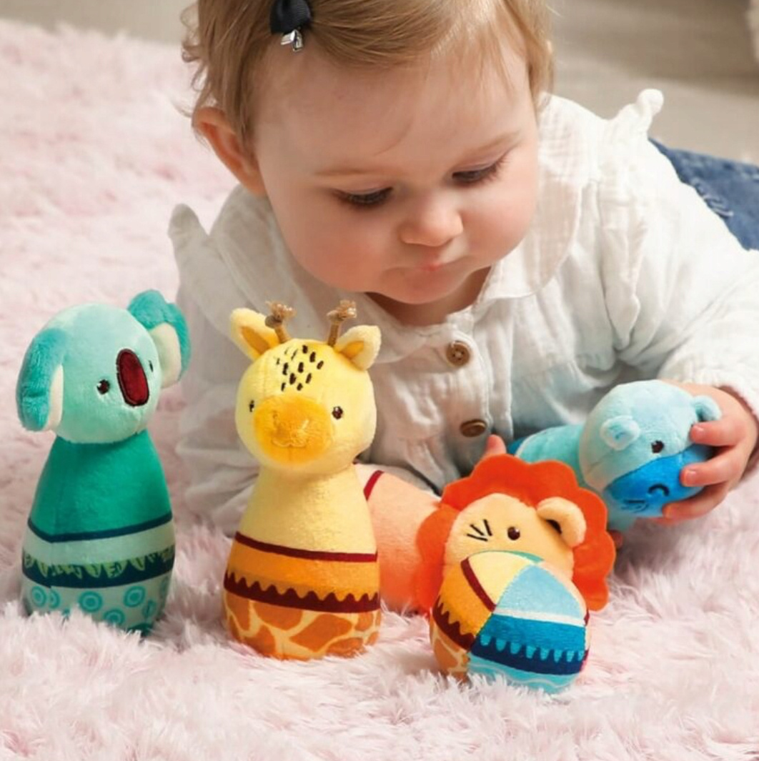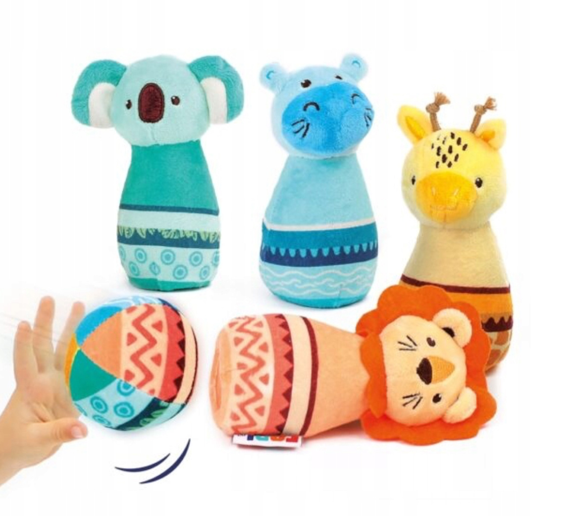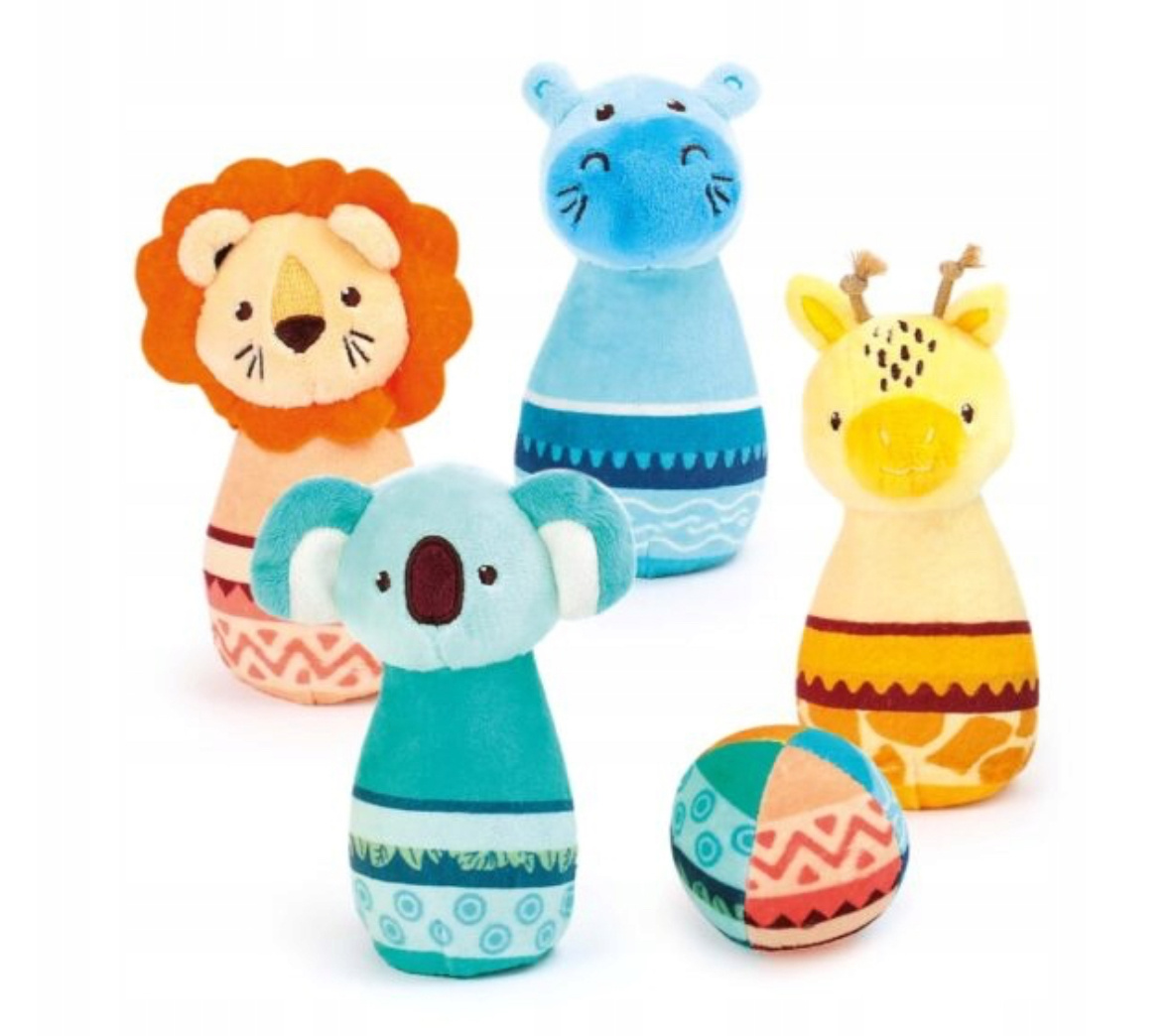 - Ten uroczy zestaw to idealna propozycja na pierwszą grę zręcznościową dla najmłodszych. Mięciutkie kręgle w kształcie sympatycznych zwierząt zachęcają do aktywnej zabawy, wspierając jednocześnie rozwój motoryczny, koordynację i precyzję ruchów.