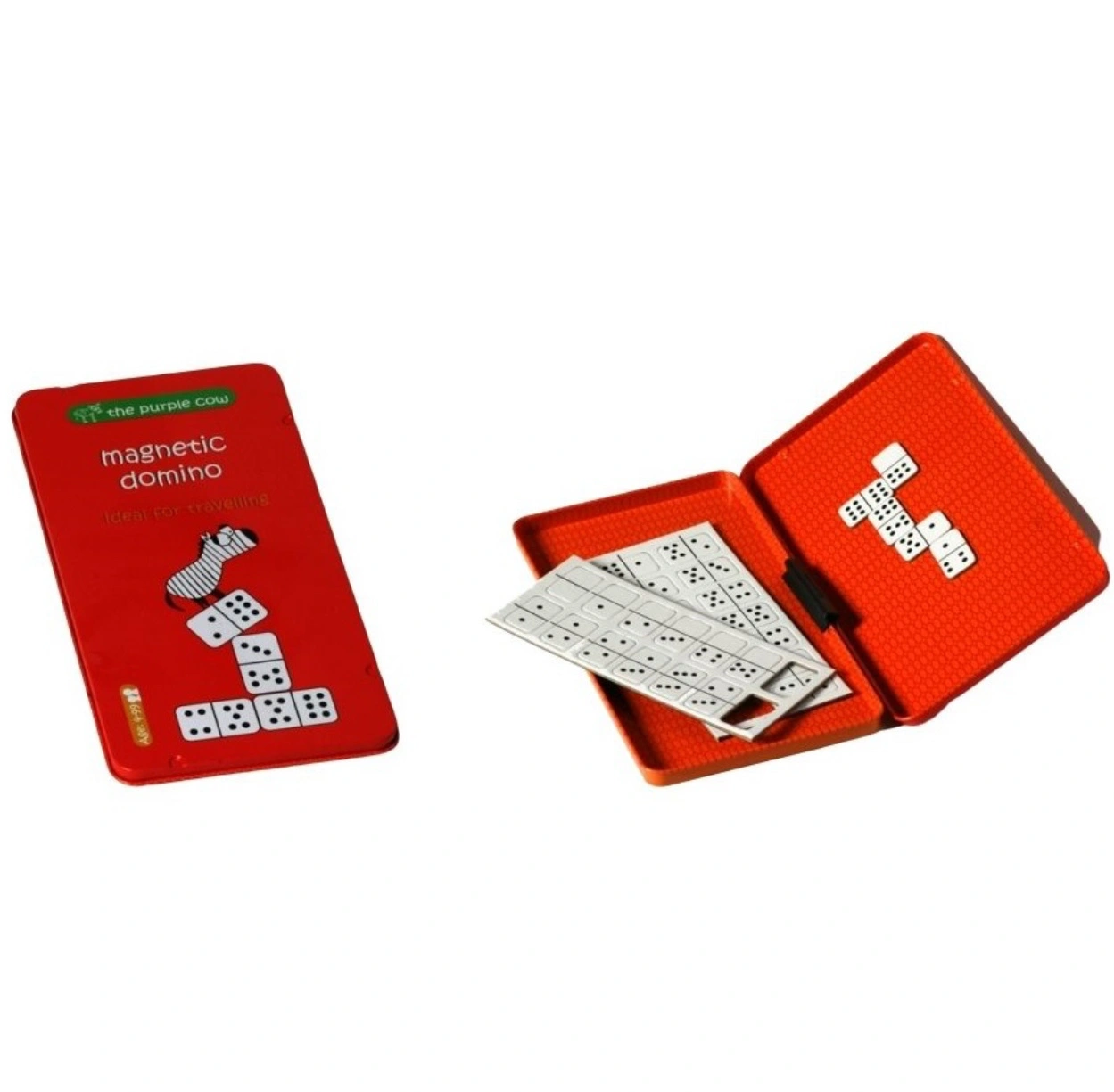 - Magnetyczna gra podróżna Domino The Purple Cow to doskonała klasyczna gra, idealna na czas podróży. Dzięki metalowemu opakowaniu, które pełni funkcję planszy, oraz magnetycznym elementom, gra jest wygodna, kompaktowa i bezpieczna w użytkowaniu.