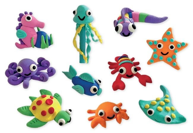 - Zestaw Podwodny Świat pozwala na stworzenie 10 zabawnych postaci morskich zwierzątek. Wykorzystaj dostarczoną glinę do modelowania, rolowania, rozciągania i spłaszczania. Narzędzie drewniane pomoże Ci dodać szczegóły do Twoich prac.