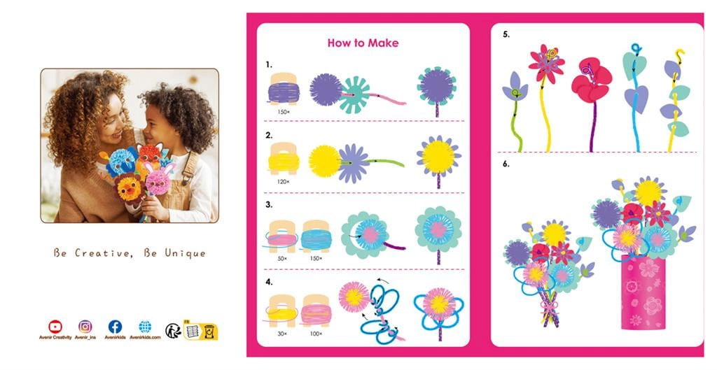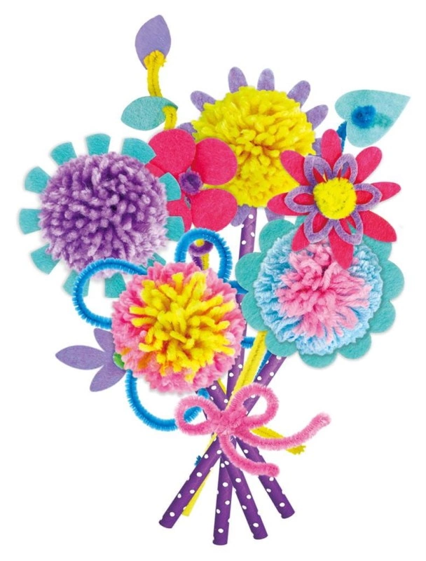 - Bukiet Pom Pom to kreatywna zabawa dla dzieci, gdzie tworzą kwiaty z papieru, filcu i włóczki. To idealna dekoracja do pokoju lub unikalny prezent.