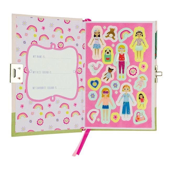 Zestaw naklejek – zawiera zabawne naklejki z postaciami dziewczynek oraz innymi wzorami, które umożliwiają personalizację pamiętnika.