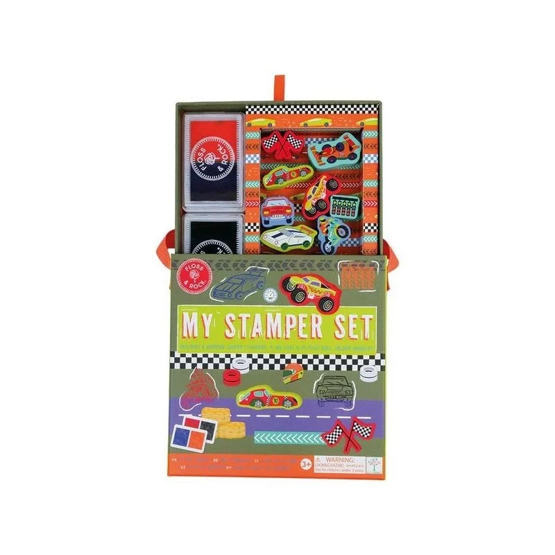 Przenieś swoje dziecko w świat wyścigów i motoryzacyjnej przygody! Zestaw Floss & Rock Samochody pozwala tworzyć własne sceny, opowiadać historie i rozwijać kreatywność przy użyciu pieczątek, kolorowych tuszy oraz pełnokolorowej książeczki. Idealny dla małych fanów samochodów, motocykli i ciężarówek.