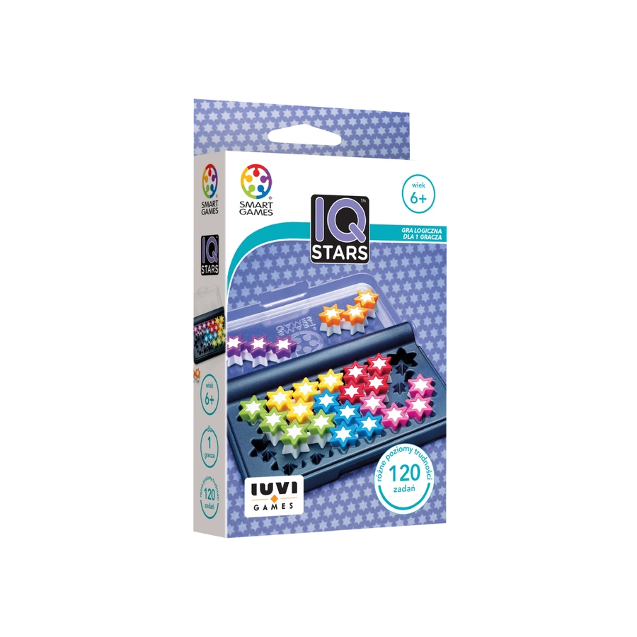 - IQ Stars to kompaktowa gra logiczna z 120 zadaniami. Umieszczaj 7 elementów o różnych kształtach i kolorach, rozwijaj koncentrację i nieszablonowe myślenie. Graj wszędzie, nauka przez zabawę!