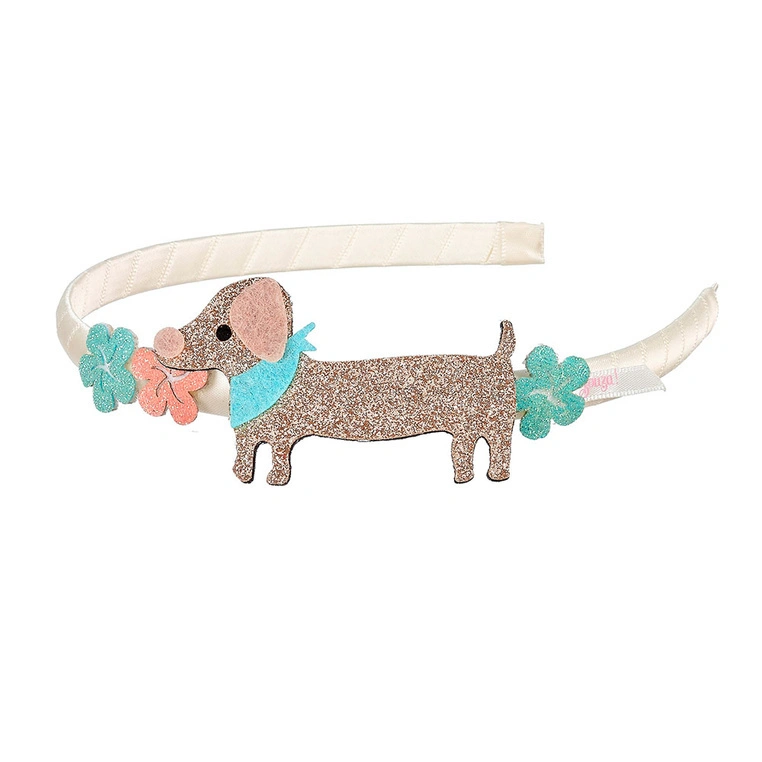 Opaska z brokatowymi kwiatkami i jamnikiem Puck – Souza!