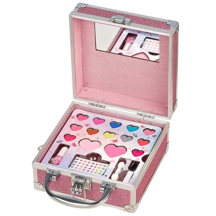 Wyjątkowy zestaw do makijażu dla dzieci od holenderskiej marki Souza! – zapakowany w uroczą walizeczkę z lusterkiem, metalowymi okuciami, rączką i praktycznym zapięciem. Idealny na urodziny, zabawę w salon piękności czy jako stylowy prezent.