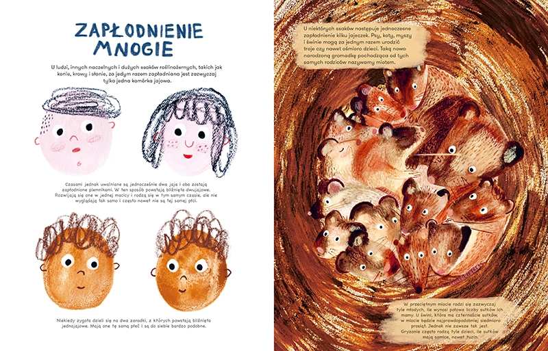 - Ta pięknie zilustrowana książka zabierze cię w fascynującą podróż po świecie ssaków – od zapłodnienia, przez ciążę i poród, aż po karmienie i opiekę nad młodymi.