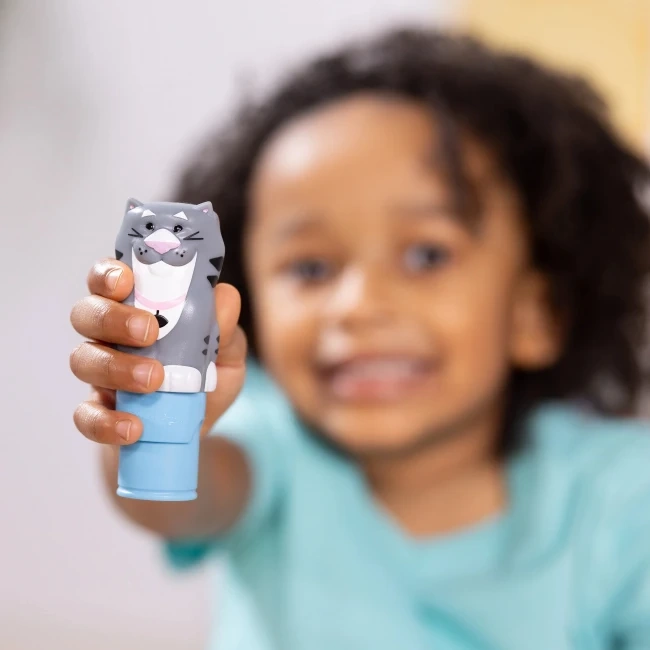 Stempelek z motywem kotka: Uroczy stempelek w kształcie tygryska, który stanowi główną atrakcję zestawu i dodaje zabawie radości.