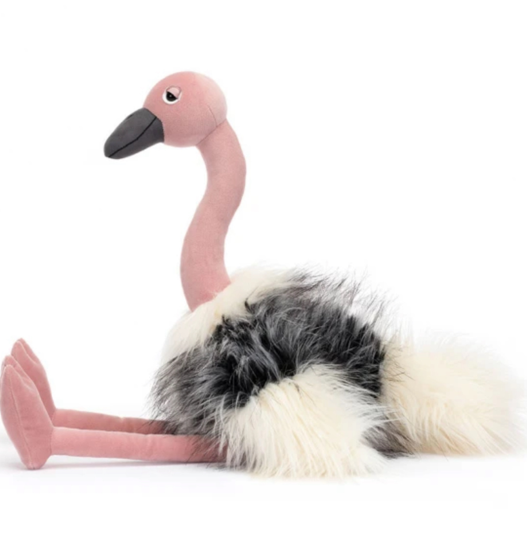 Ten niezwykle elegancki Struś od Jellycat to wyjątkowa pluszowa przytulanka, która zachwyci dzieci i dorosłych swoim oryginalnym wyglądem oraz niezwykłą miękkością. Delikatna główka z zamszowym dziobem, długa szyja i puszyste, falujące pióra w odcieniach czerni i kremu tworzą niepowtarzalny charakter tej zabawki. Długie, gotowe do biegu nogi dodają jej figlarności i wdzięku.