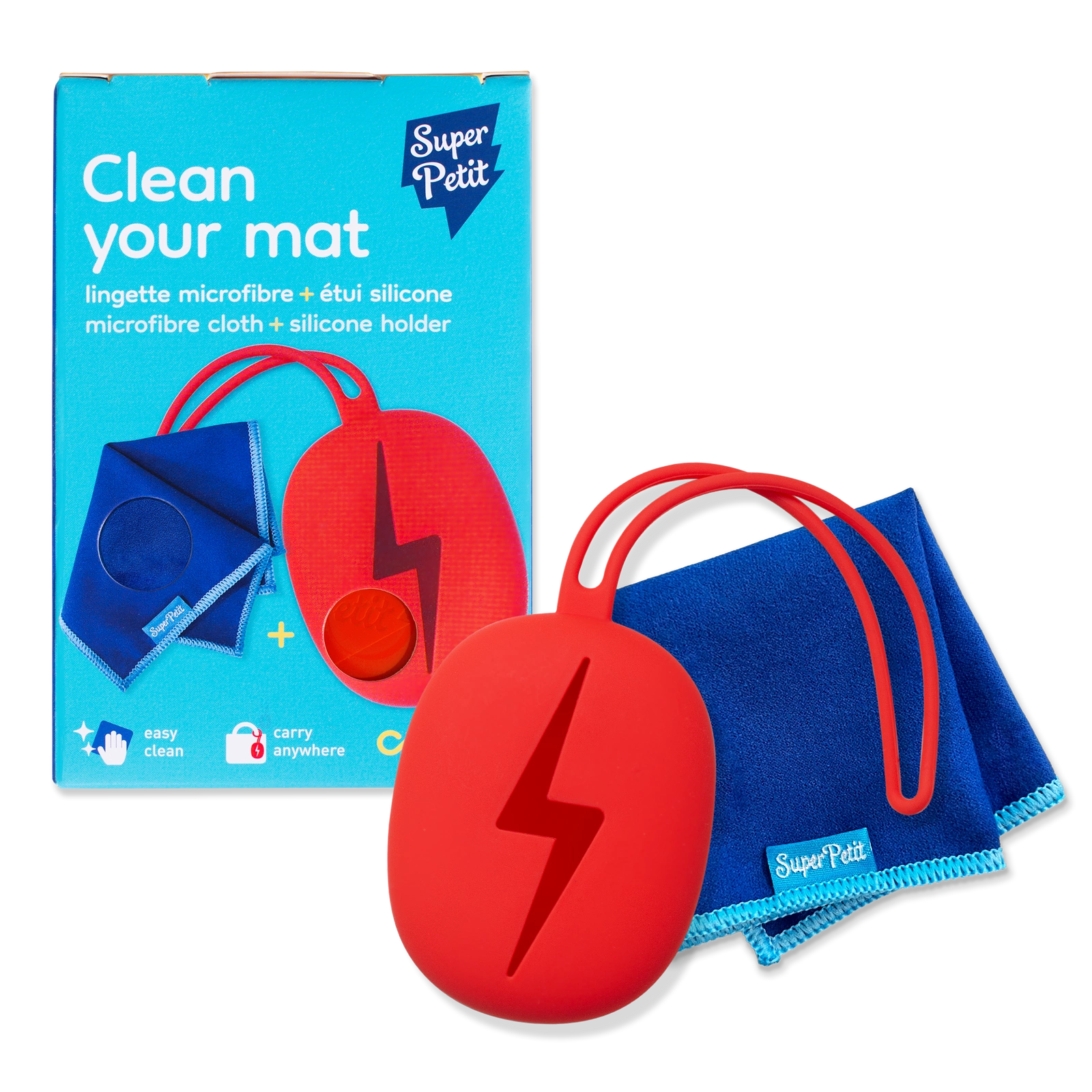 Utrzymuj swoje maty w czystości, gdziekolwiek jesteś, dzięki tej wyjątkowo miękkiej ściereczce z mikrofibry i praktycznemu silikonowemu uchwytowi.
