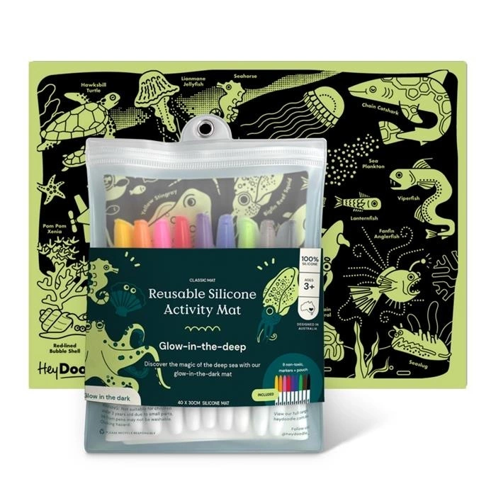 HeyDoodle – Duża Silikonowa Mata do Kolorowania A3 „Morskie Głębiny” – Świecąca w Ciemności