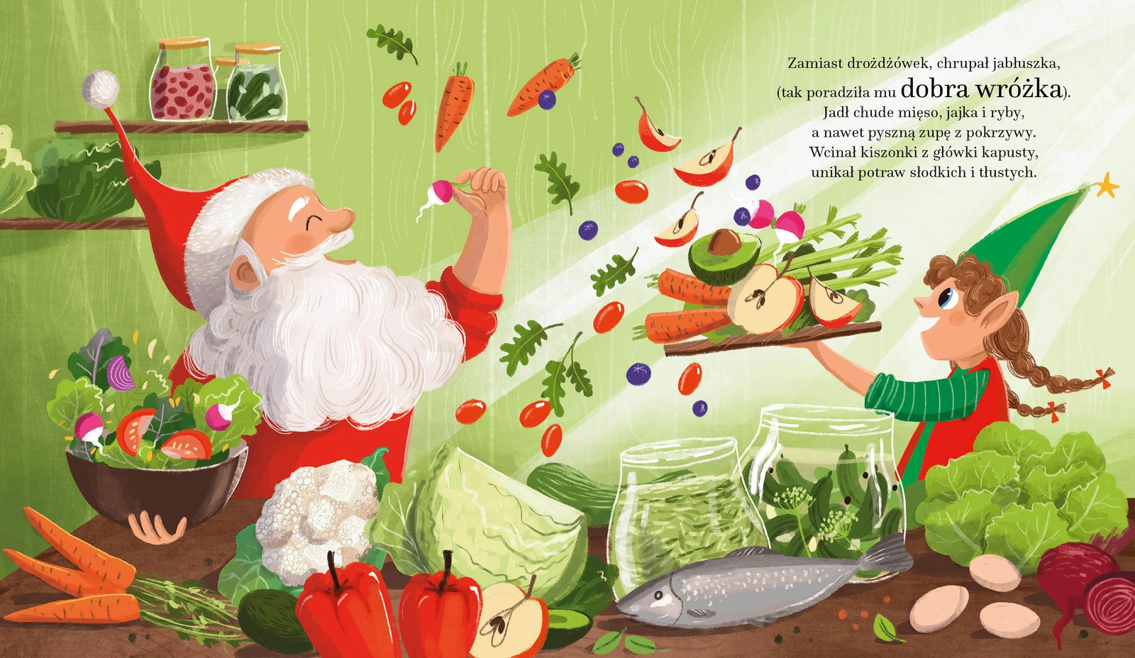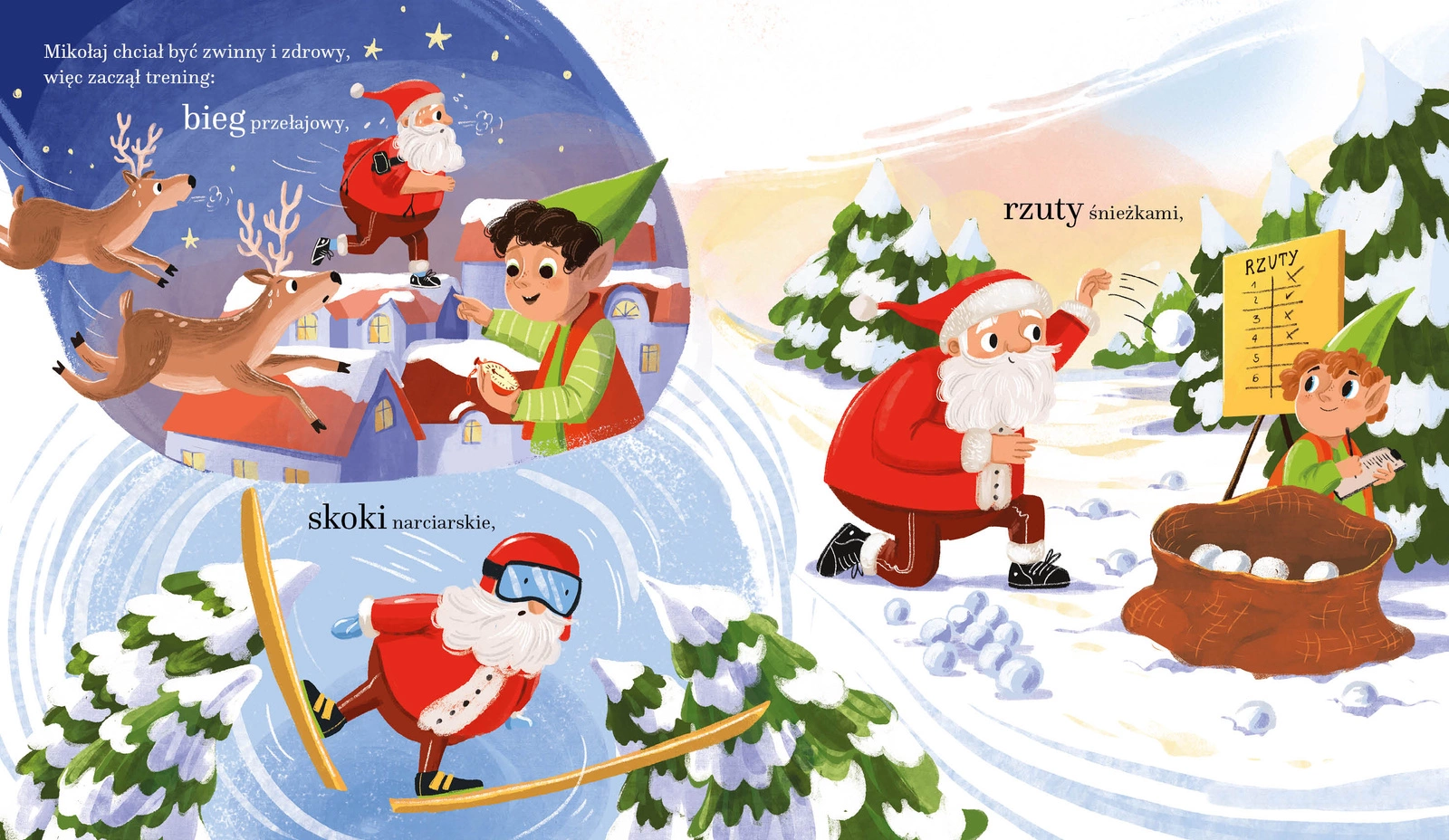Pełna humoru, rymowana opowieść uczy dzieci, jak ważny jest ruch, zdrowe nawyki i wspólne działanie, jednocześnie bawiąc i wprowadzając w świąteczny nastrój.