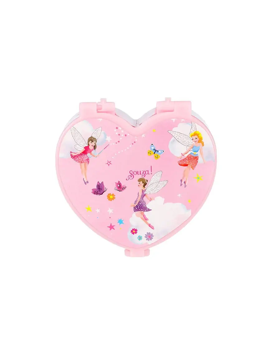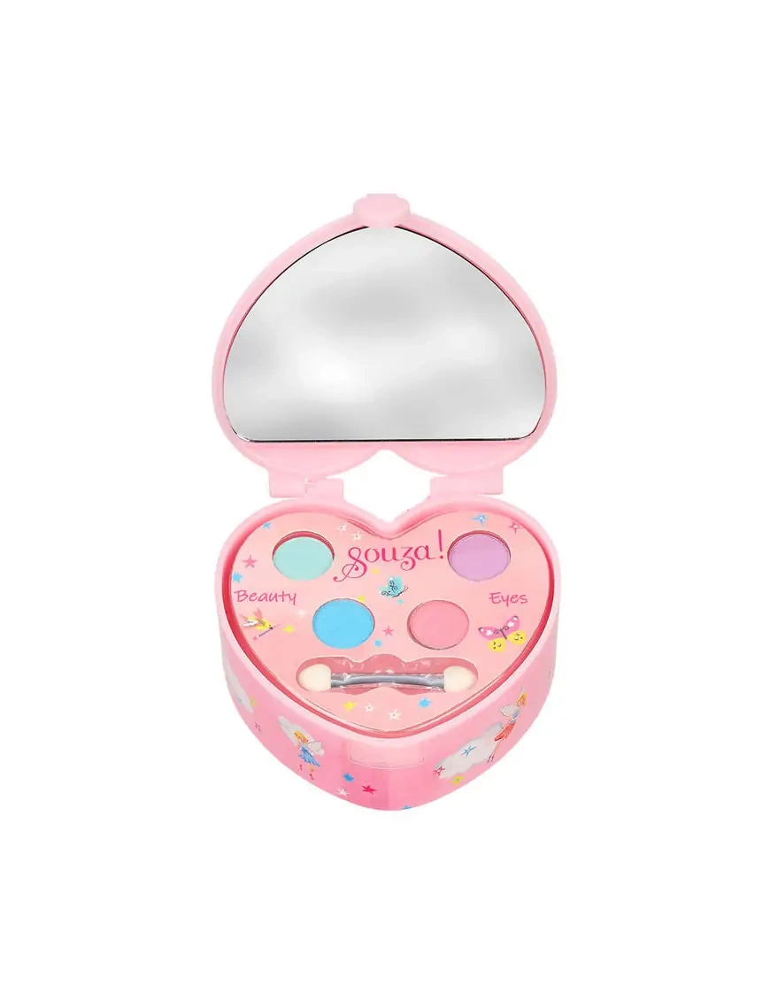 - Urocza szkatułka w kształcie serca z lusterkiem i cieniami do powiek dla dzieci. Zawiera 4 kolorowe cienie, w pełni bezpieczne dla skóry.