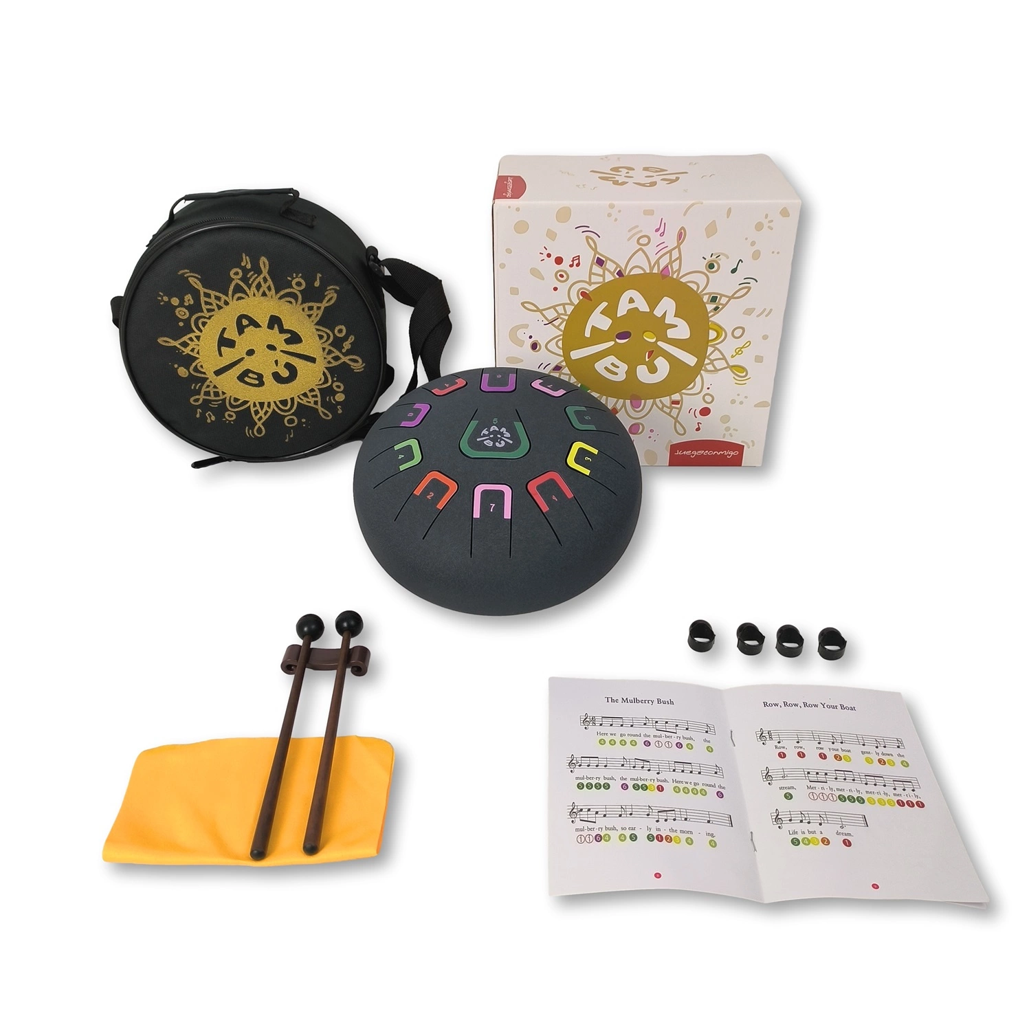 - Tambu to wyjątkowy bębenek językowy, który łączy relaksację i kreatywność. Wykonany ze stali, ma 8 cali (20 cm) średnicy i oferuje 11 harmonijnych tonów, które umożliwiają tworzenie pięknych melodii.