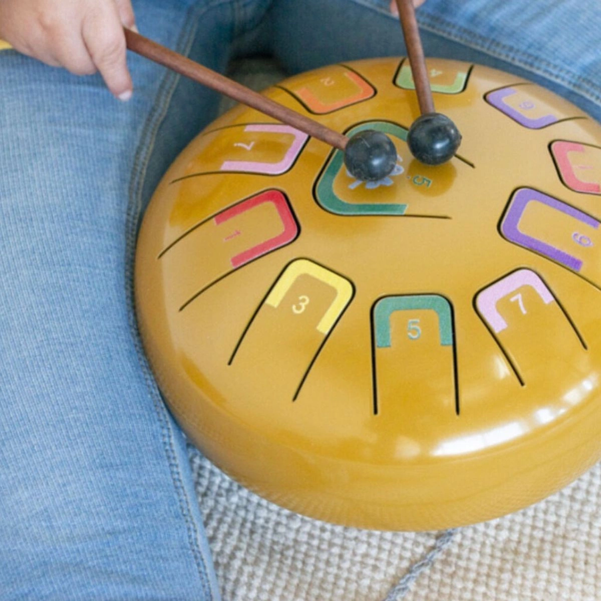 Bębenek Tambu został zaprojektowany z myślą o intuicyjnej nauce i radości z gry. Oznaczenia cyfrowe i kolorowe, zgodne z metodą Montessori, pomagają początkującym muzykom łatwiej odnaleźć się w świecie dźwięków. Do zestawu dołączony jest zeszyt z nutami, który inspiruje do tworzenia własnych melodii i rytmów.