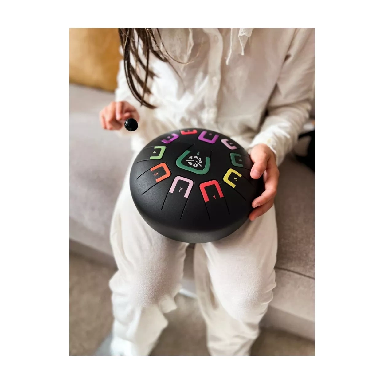 Tambu to wyjątkowy bębenek językowy, który łączy relaksację i kreatywność. Wykonany ze stali, ma 8 cali (20 cm) średnicy i oferuje 11 harmonijnych tonów, które umożliwiają tworzenie pięknych melodii. Jego aksamitne brzmienie koi zmysły, rozwijając jednocześnie talent muzyczny zarówno u dzieci, jak i dorosłych.