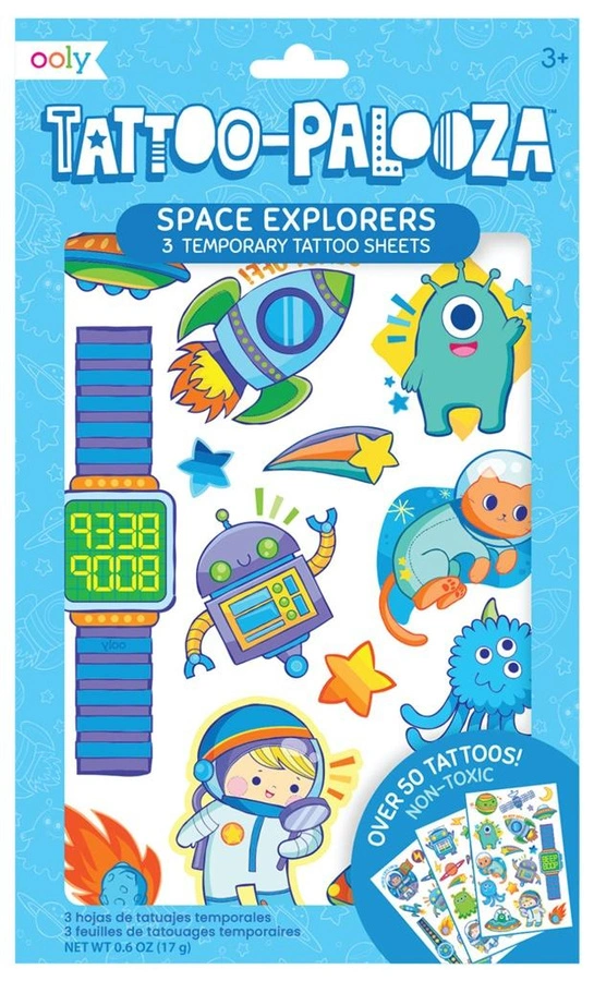 Tatuaże zmywalne Tattoo Palooza - Odkrywcy Kosmosu zestaw 3 arkuszy