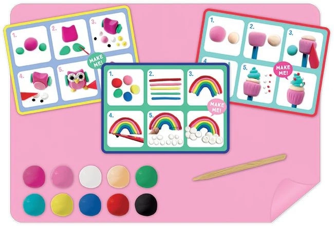 Zestaw Tęczowe Wróżki pozwala na stworzenie 10 uroczych, tęczowych postaci. Wykorzystaj dostarczoną glinę do modelowania, rolowania, rozciągania i spłaszczania. Narzędzie drewniane pomoże Ci dodać szczegóły do Twoich prac. Glina jest miękka w dotyku i schnie na powietrzu, co sprawia, że jest łatwa w obróbce, a dzięki silikonowej macie sprzątanie po zabawie jest minimalne.