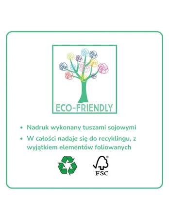 - drukowany przy użyciu tuszów sojowych, przyjaznych dla środowiska