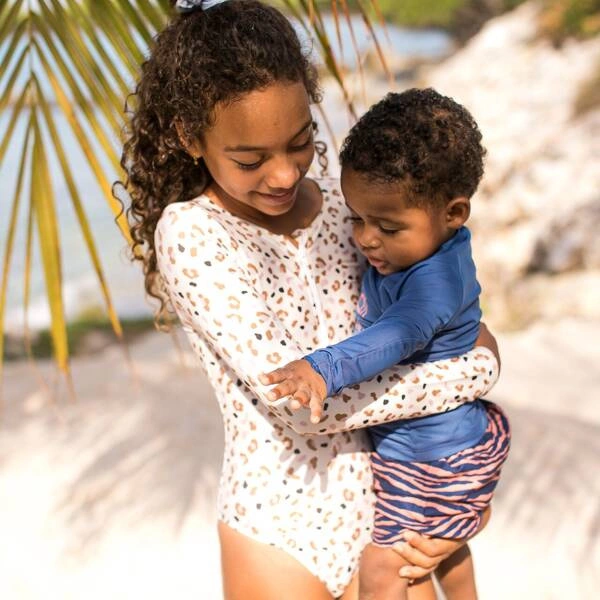 Przygotuj swoje dziecko na wspaniałą zabawę w wodzie! Kostium Kaki Leopard od The Swim Essentials to idealny wybór na letnie dni. Wykonany z elastycznego materiału, zapewnia wygodę i swobodę ruchów. Praktyczny suwak z przodu umożliwia łatwe zakładanie, a długie rękawy oferują dodatkową ochronę przed słońcem. Filtr UPF 50+ zapewnia doskonałą ochronę przed promieniowaniem UV, co pozwala cieszyć się wodnymi zabawami bez obaw o poparzenia słoneczne.