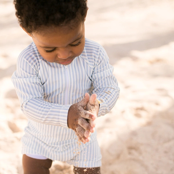 Idealny wybór na słoneczne dni! Kostium kąpielowy Light Blue Striped od The Swim Essentials zapewni Twojemu maluchowi pełną ochronę przed słońcem, dzięki zastosowaniu tkaniny z filtratem UPF 50+. Dzięki temu dziecko może bezpiecznie cieszyć się długimi godzinami na świeżym powietrzu, a Ty nie musisz martwić się o ryzyko poparzeń słonecznych. Wygodny suwak z przodu ułatwia zakładanie, a długie rękawki dodatkowo chronią skórę przed szkodliwym promieniowaniem UV.