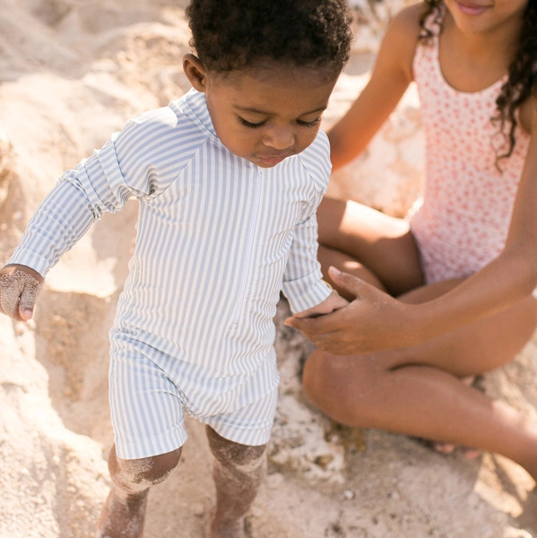Idealny na słoneczne dni! Kostium kąpielowy Light Blue Striped od The Swim Essentials to doskonały wybór na letnie zabawy na świeżym powietrzu. Wykonany z wysokiej jakości materiału, zapewnia ochronę przed promieniowaniem UV na poziomie UPF 50+, dzięki czemu Twój maluch może cieszyć się całymi dniami na słońcu bez ryzyka poparzeń. Z wygodnym suwakiem z przodu i długimi rękawkami, kostium zapewnia wygodę i dodatkową ochronę przed słońcem.