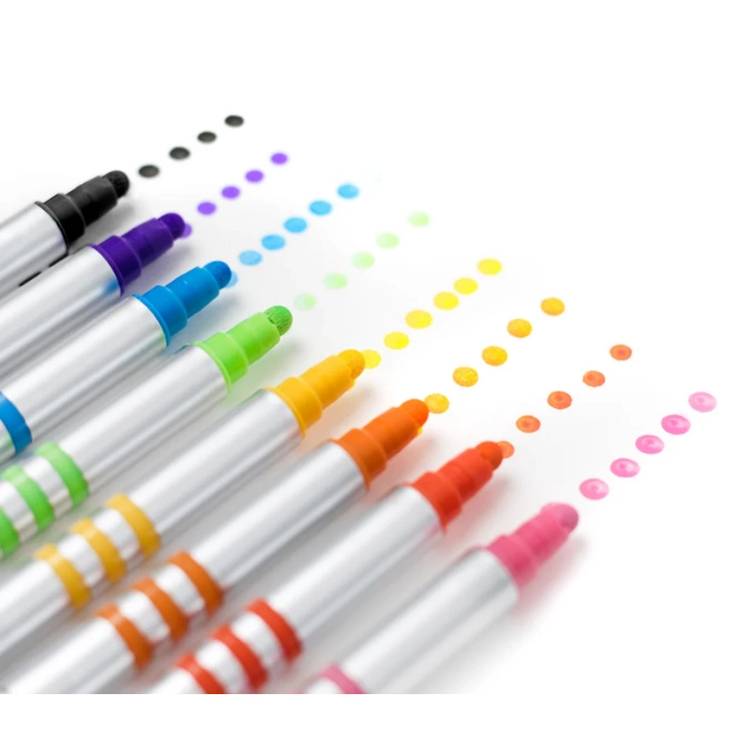 Prezentowany zestaw dwustronnych pisaków otwiera przed dziećmi nieograniczone możliwości twórcze. Pisaki doskonale sprawdzają się na różnych powierzchniach, takich jak tkaniny, szkło, ceramika, płótno czy drewno. Każdy z nich wyposażony jest w dwie końcówki – pędzelkową oraz okrągłą – co umożliwia precyzyjne i artystyczne zdobienie różnorodnych materiałów.