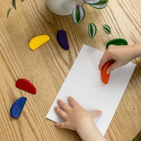 Eko Kredki od Tiger Tribe to zestaw 6 kolorowych kredek, zaprojektowanych z myślą o najmłodszych artystach. Ich unikalny kształt wspomaga rozwój chwytu i umiejętności motorycznych maluchów. Kredki wykonane są z naturalnej soi i wosku pszczelego, a kolory pochodzą w 100% z naturalnych pigmentów, bez użycia ropy naftowej, co sprawia, że są bezpieczne dla dzieci i środowiska. Opakowanie jest z papieru FSC, co dodatkowo podkreśla ekologiczną troskę o planetę.