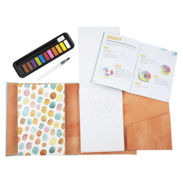 Gotowe Szkice: Dzięki wstępnie szkicowanym konturom zwierząt (od kotów i psów po ślimaki i wieloryby) na papierze akwarelowym, młodzi artyści mogą natychmiast skupić się na doskonaleniu techniki malowania i cieniowania.