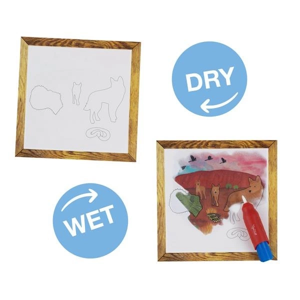 Kolorowanka wodna od Tiger Tribe to doskonałe rozwiązanie dla najmłodszych artystów. Dzięki specjalnemu pędzelkowi i planszom wielokrotnego użytku, dzieci mogą odkrywać ukryte ilustracje zwierząt z australijskiego buszu – wystarczy woda, by magicznie ujawniły się barwne sceny. Po wyschnięciu rysunki znikają, co pozwala na ponowną zabawę i niekończące się malowanie.